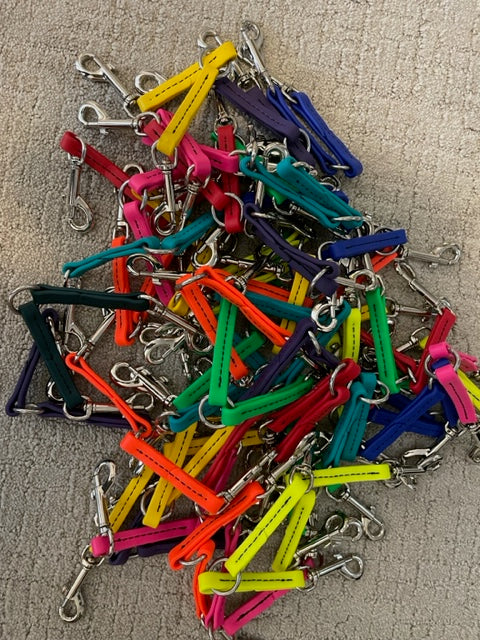 This BioThane fan holder (water bucket holder) can clip on to any crate with average sized metal bars! It even has an O-ring in the center.